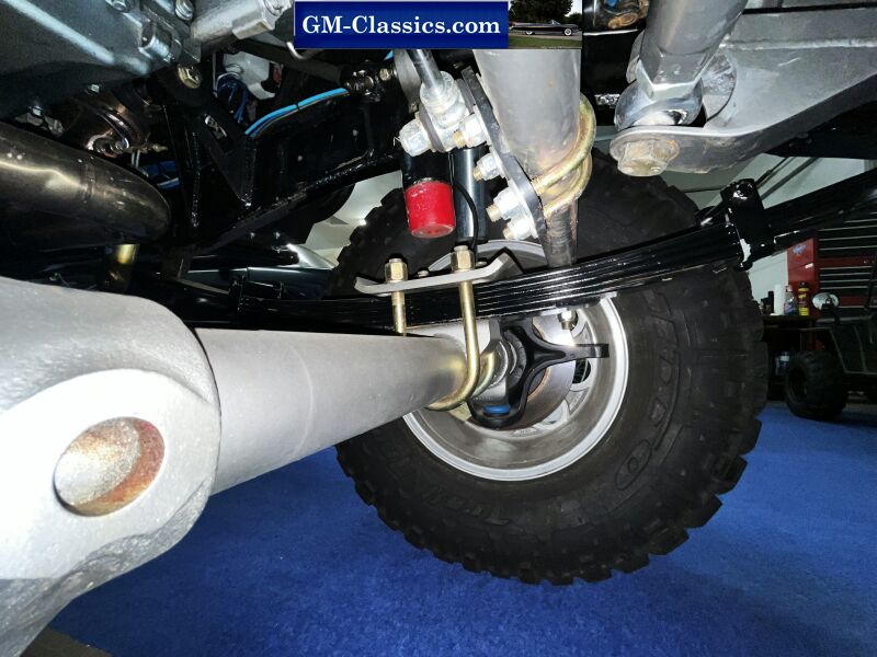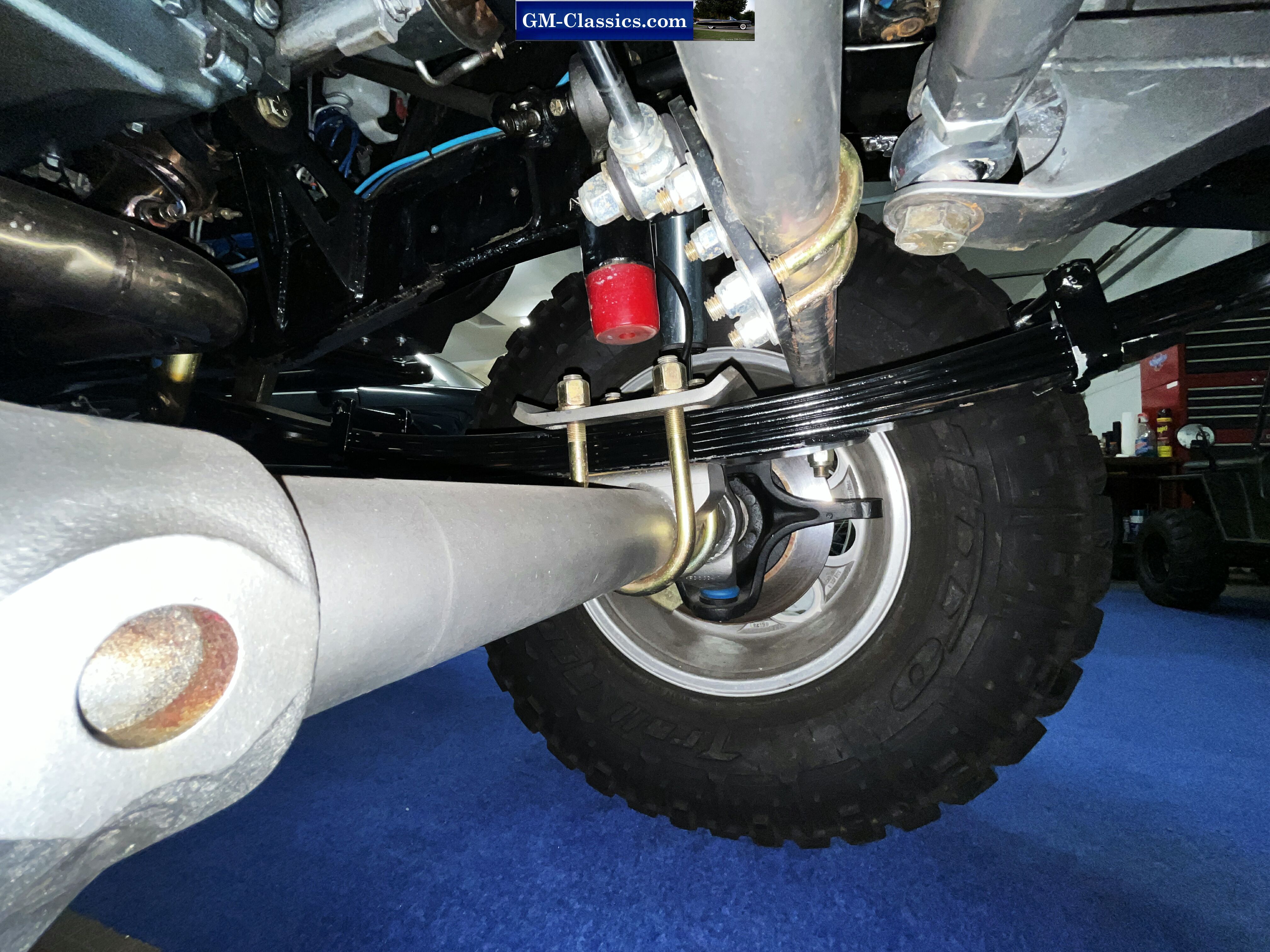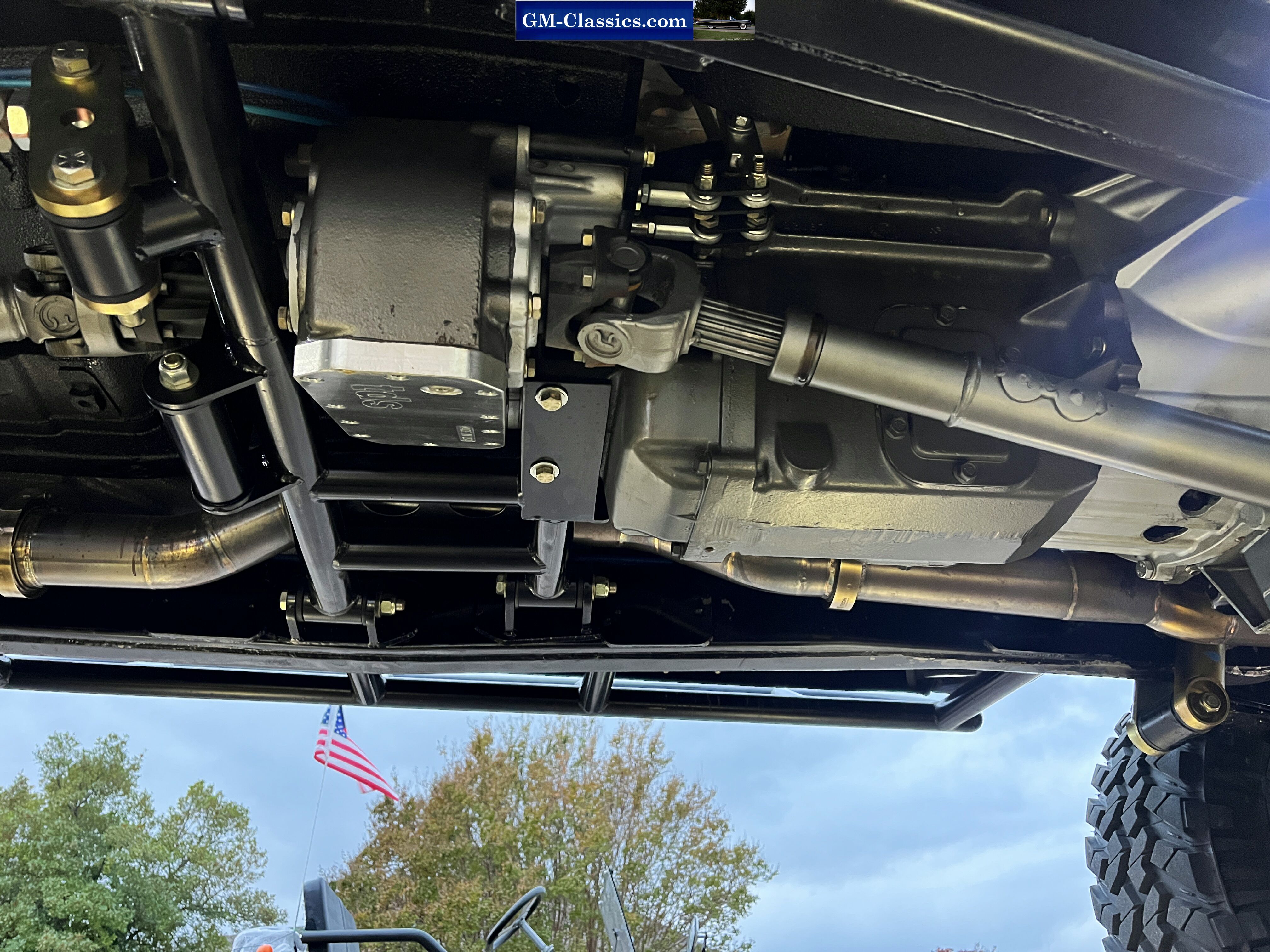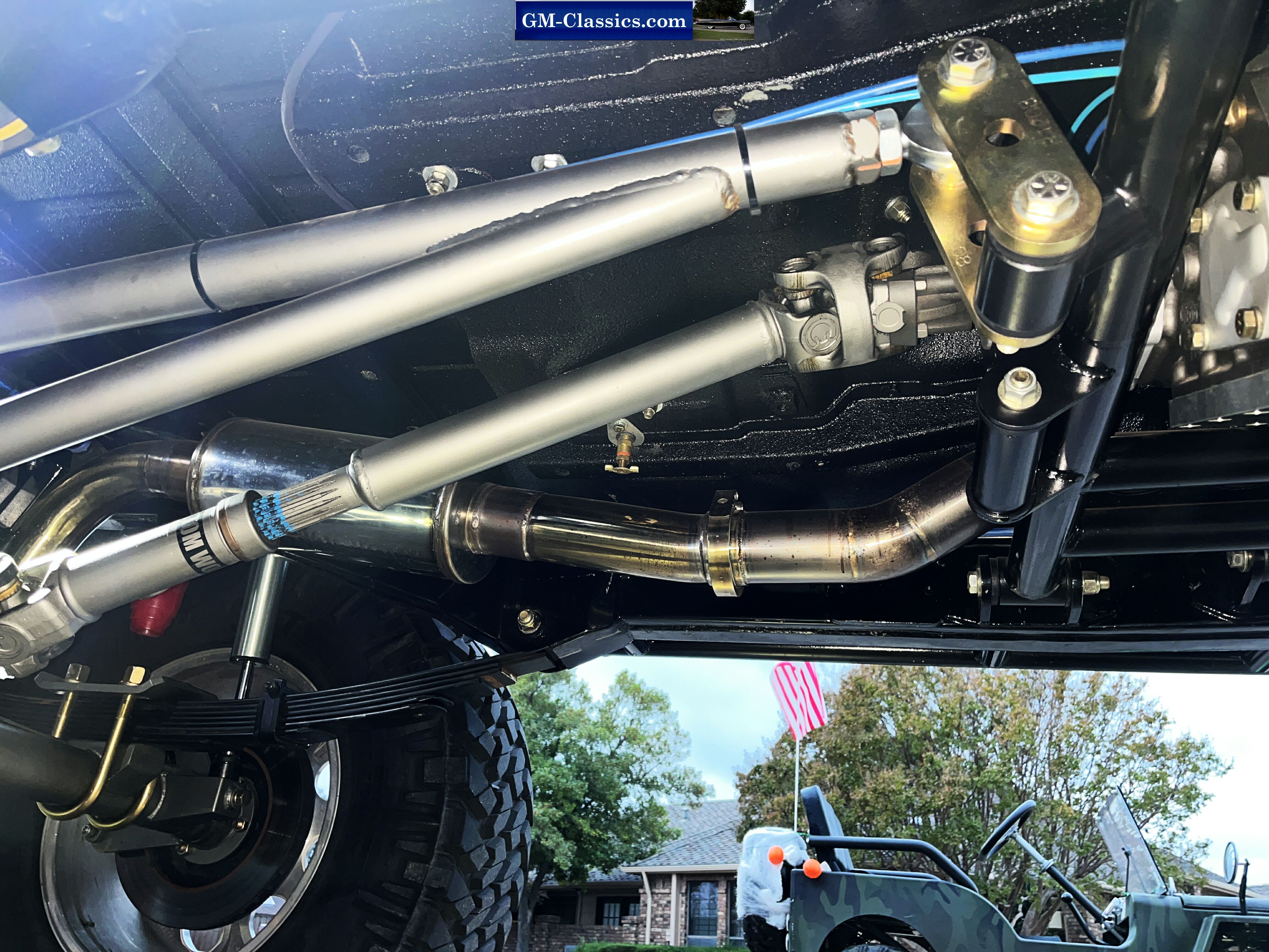 Torque arm and Tom woods driveshaft seen along with full stainless 3" exhaust, GM Z71 4 wheel disk brakes