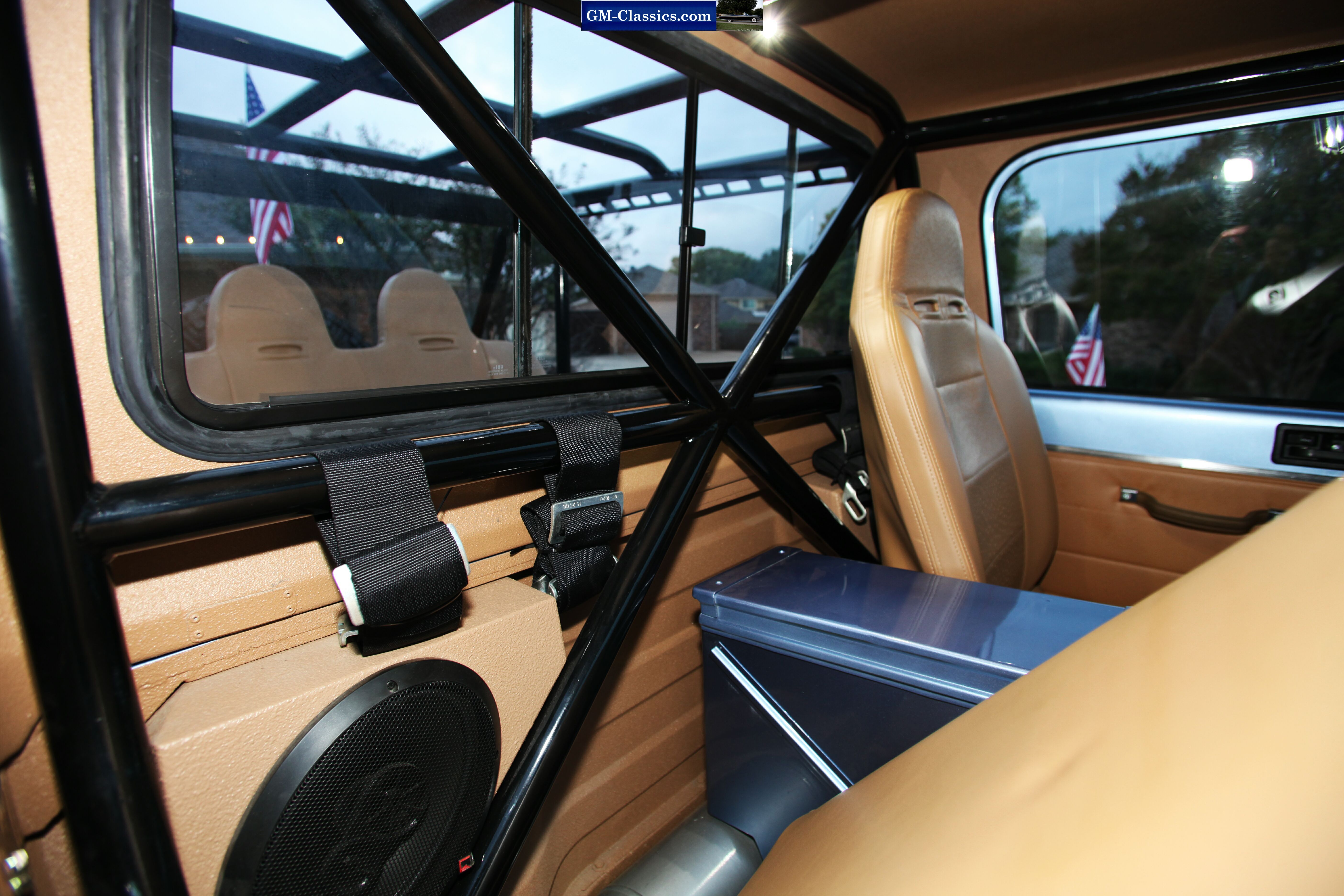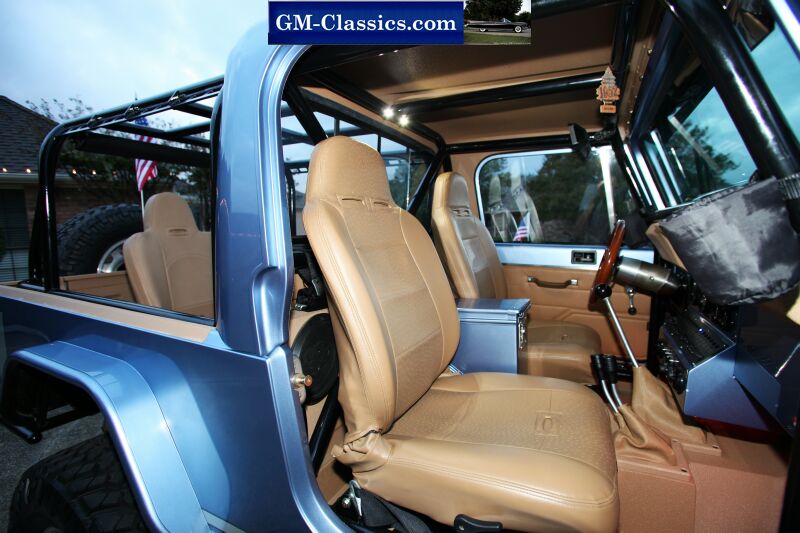 Now here is the cool part....... The engine is not a race car engine but it is still powerful, too powerful for this even. But excess is what this machine is about. It is the LM7 indestructible vortec engine with 706 heads, mild cam and all the touches needed for long term durability bought over counter as crate with ECU and wiring. It runs cool, idles like a stock chevy pickup with a mild cam AND does it all with AC on the hottest day. We use it for parades, 4th july in texas even, hard idle slow moving. Then you can put the kids in the back with the racing harness to strap them in and with the full competition built roll cage in this CJ... they are going to be as safe as in a volvo (thats a joke for you in the know)... What I am saying is this jeep is totally usable, not something that is "all show and so over go". Take it to sonic, get food, the grand kids will love it. But the grandparents must at least have the agility to climb into it. If you want to see the hidden stereo built into this thing. Watch some vids... Not what you would expect nor does it interfere with any of the near weatherproof aspect of this machine or its capabilities.