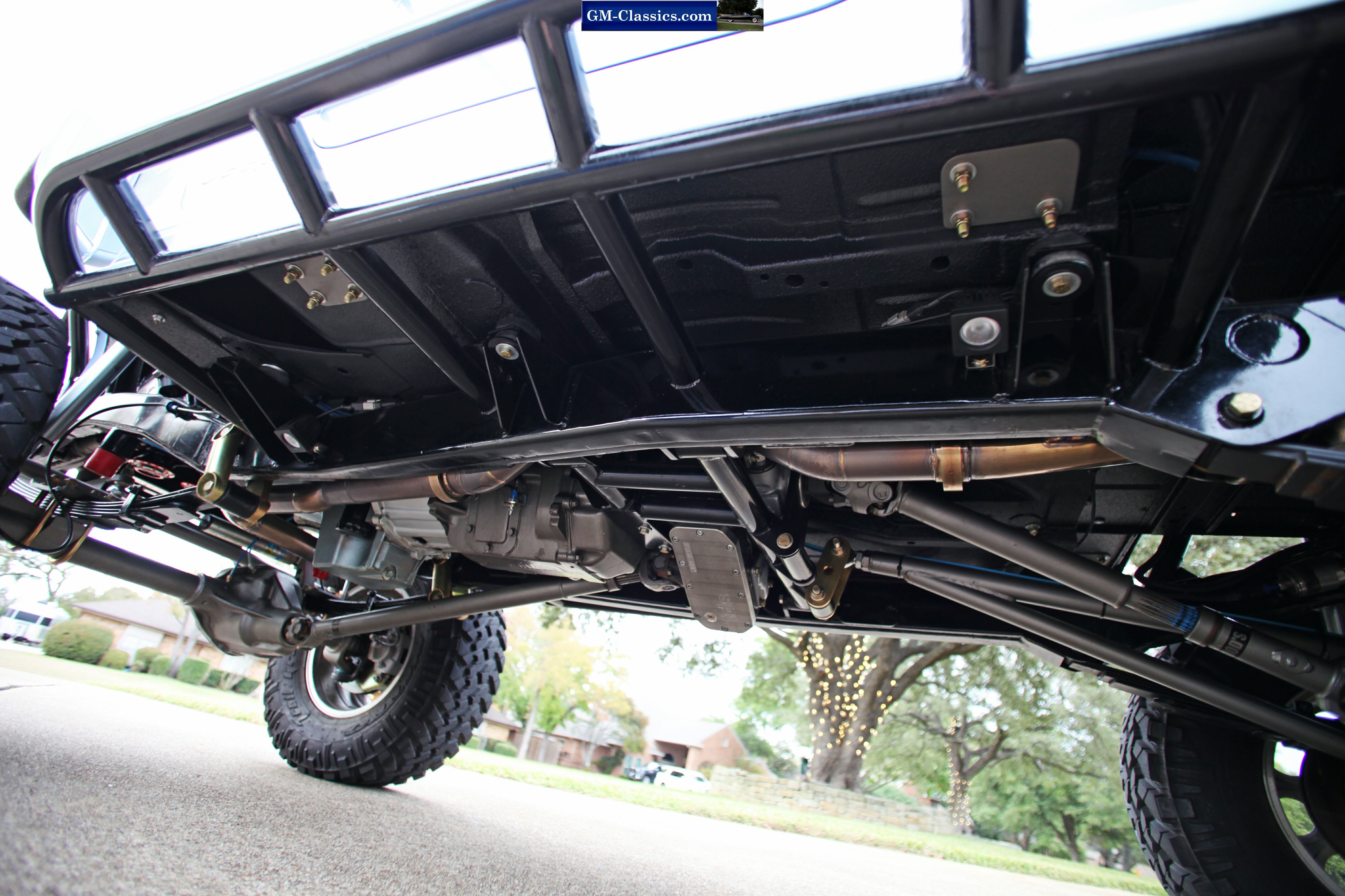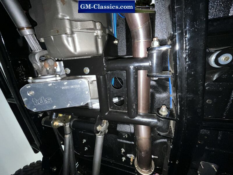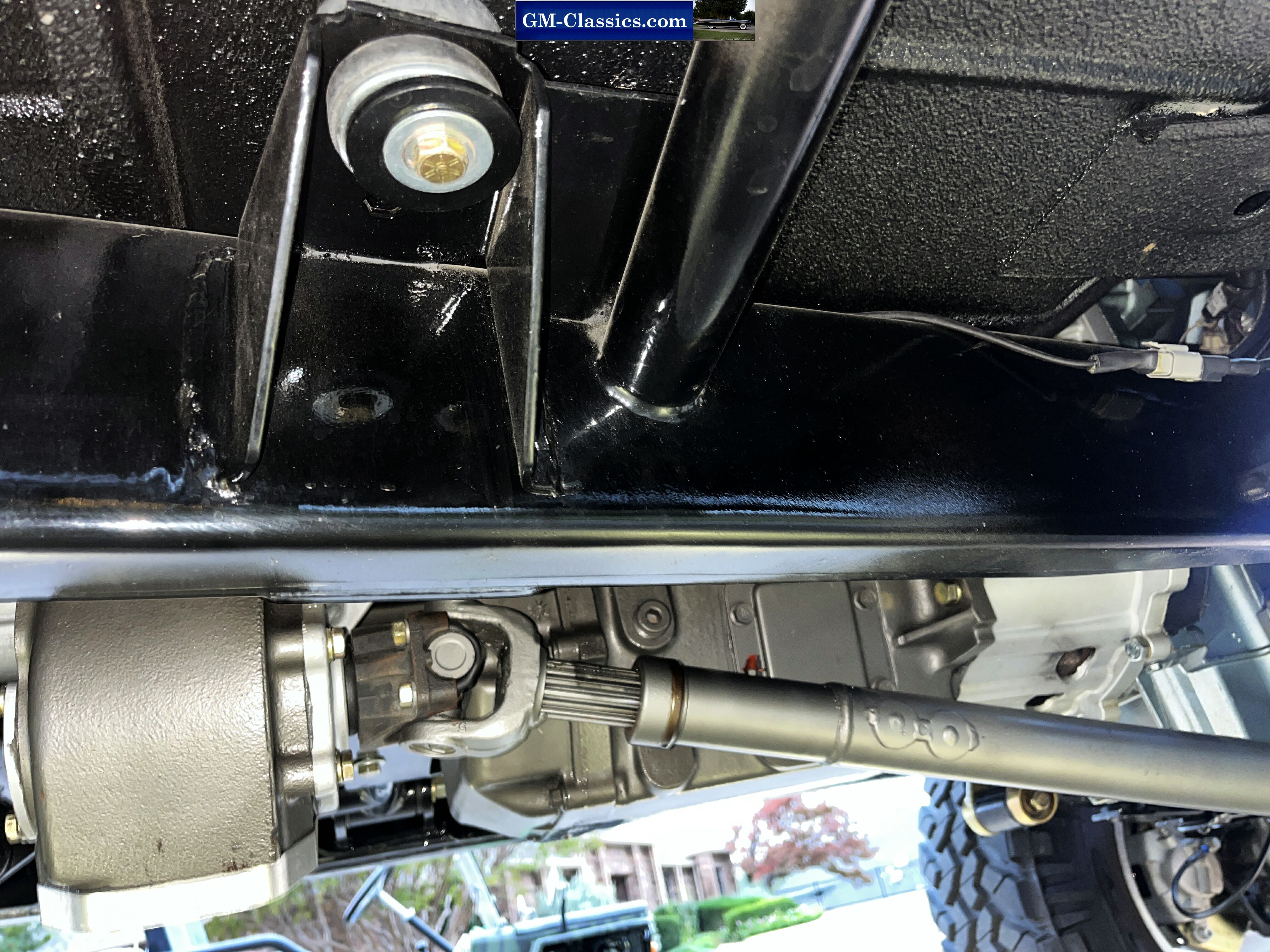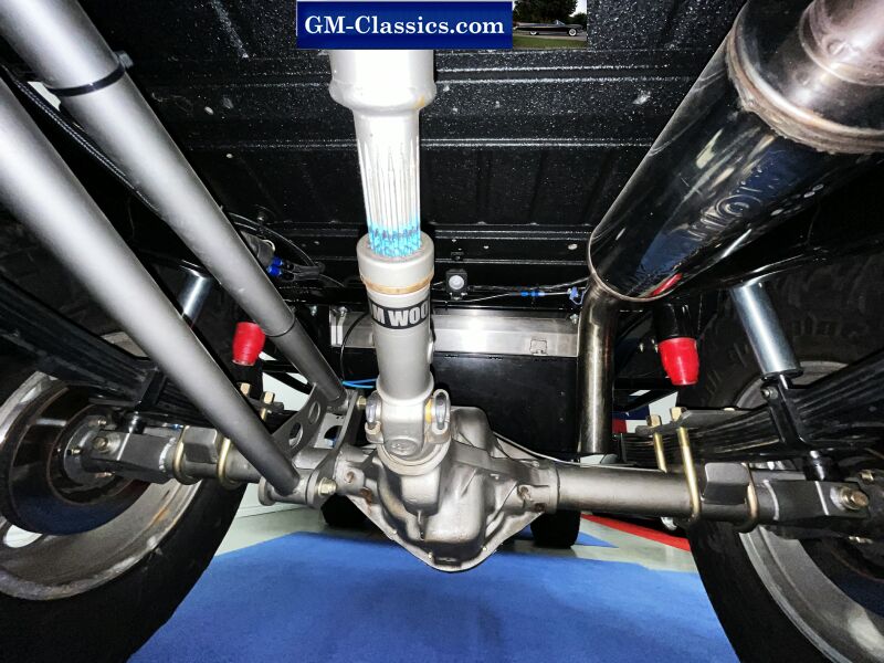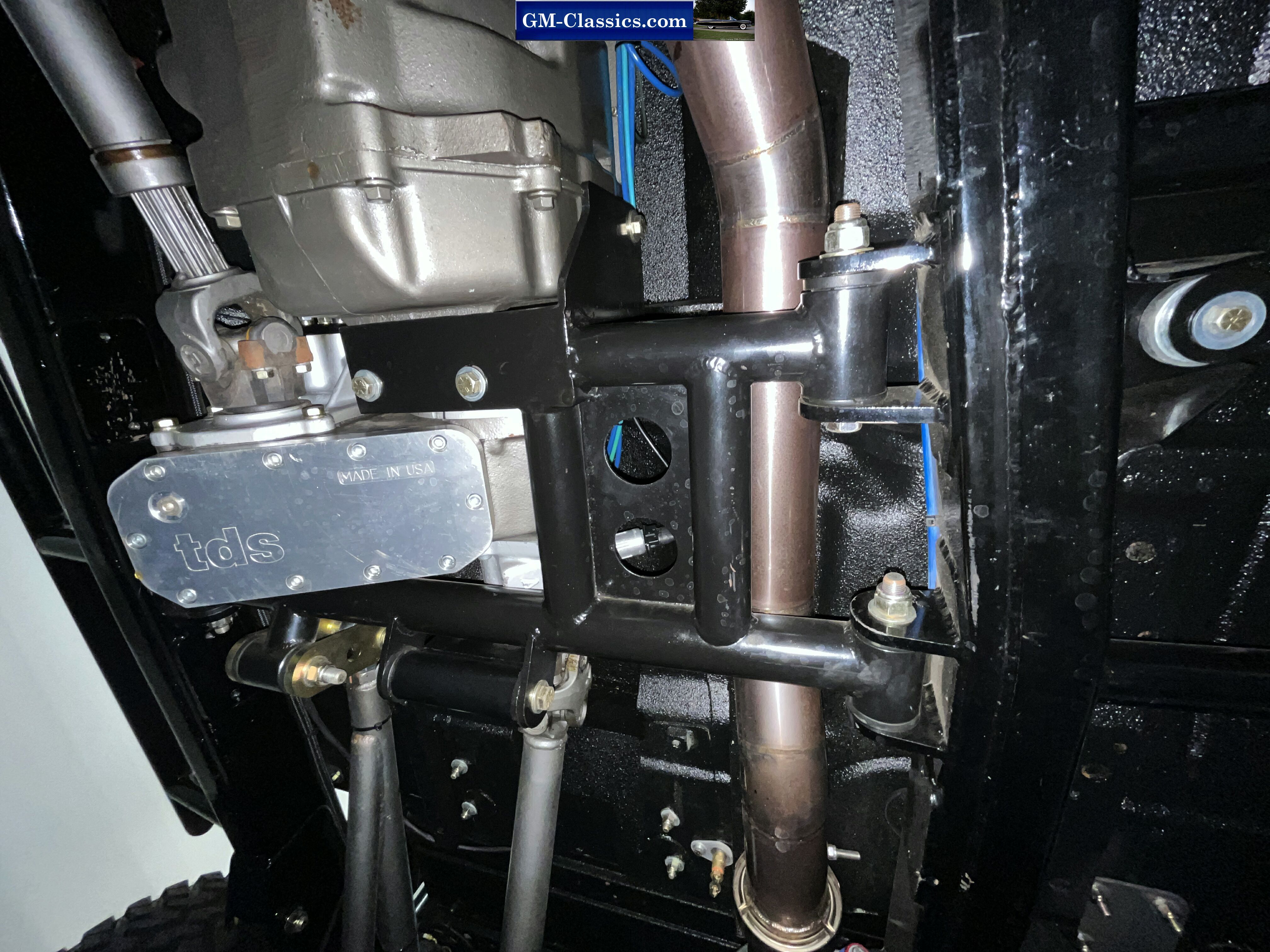 Torque arm and Tom woods driveshaft seen along with full stainless 3" exhaust, GM Z71 4 wheel disk brakes